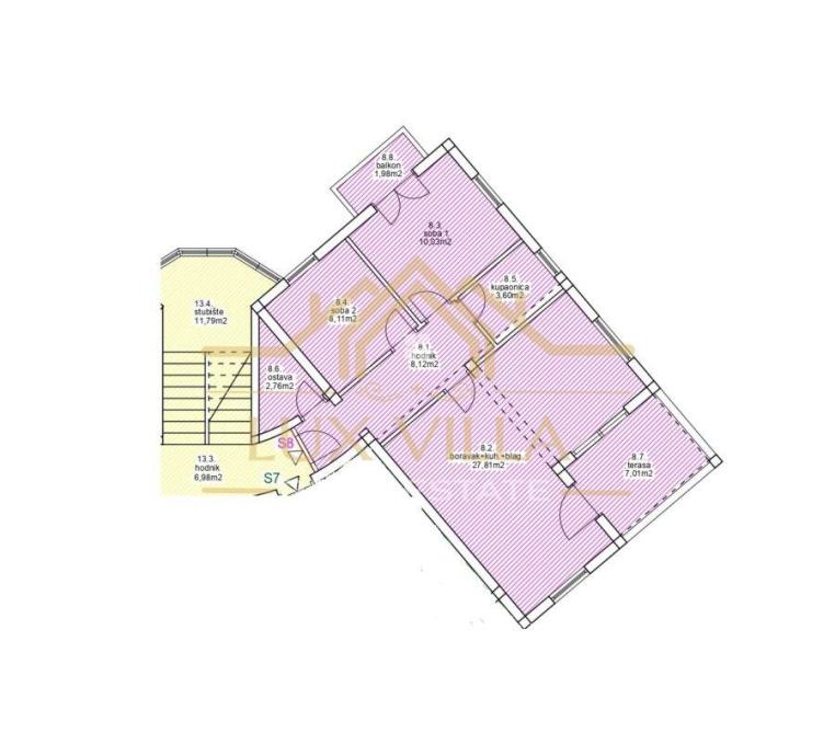 Također ima terasu, balkon, mali vrt i parkirno mjesto od 12 m2..