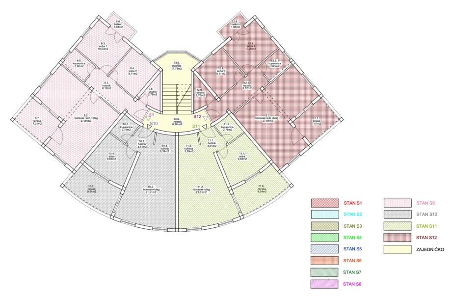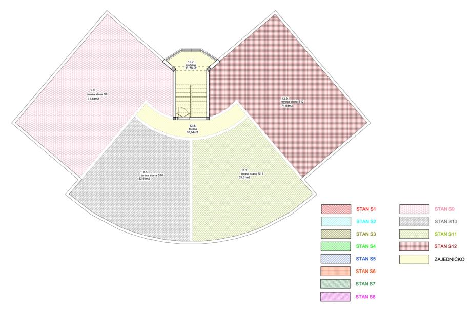 Stan S9: 60.43 m2 unutarnji prostor, 71.58 m2 krovna terasa, 91.73 m2 sveukupna neto korisna površina, cijena €350.000.