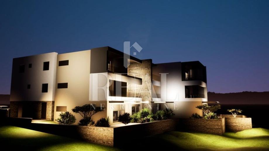 Stan 80 m od mora na prvom katu stambene zgrade ukupne površine 75,50 m2 + logga 15m2 s pogledom , Stan se sastoji od dvije spavaće sobe , kupaonice te tlocrtno otvorenog dnevnog boravka, kuhinje s blagovaonicom. Nekretnina je smješten u manjoj zgradi modernog izgleda , planirani završetak radova pred ljeto 2023 god. Blizina uređenih plaža , šetnica , kafića , restorana čine ovu nekretninu idealnom investicijom u turističke svrhe ali zbog blizine grada Šibenika i odlične cestovne infrakstuture također i za cjelogodišnje življenje
