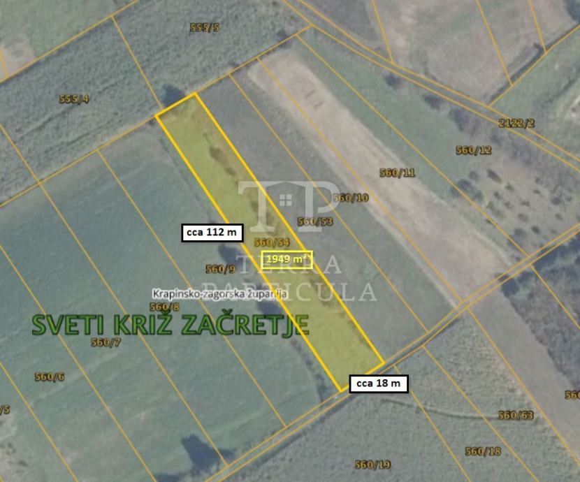 Na prodaju je građevinsko zemljište površine 1949 m². Nalazi se uz adresu Vrankovec 5C, Sveti Križ Začretje, u neposrednoj blizini Roses Designer Outleta.