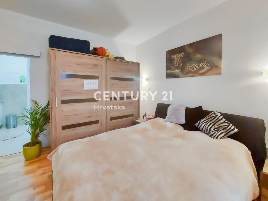 Kuća je koncipirana tako da se sastoji od 3 odvojena stana: dva manja od cca 30 m2, svaki ima kuhinju, kupaonicu i 1 spavaću sobu. Jedan stan je kompletno na novo uređen i namješten, jedan je stariji i potrebna je obnova.