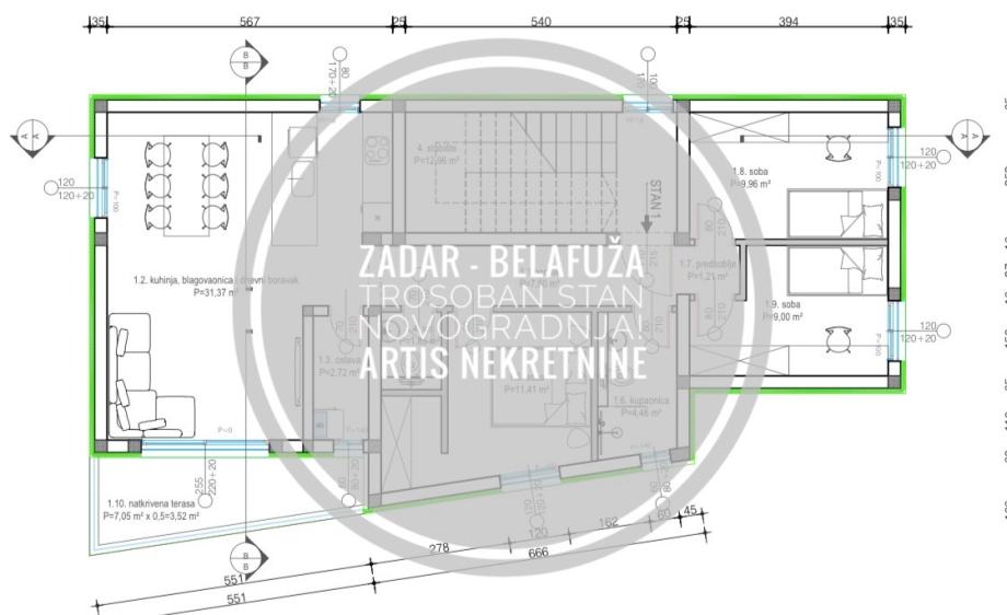 ZADAR - BELAFUŽA: TROSOBAN STAN 1. KAT, NOVOGRADNJA! (prodaja)