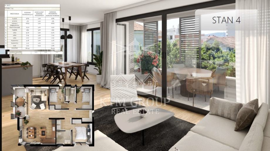 Svi ugrađeni materijali te podne i zidne obloge odabrani su prema najvišim standardima kvalitete i suvremenim građevinskim normama.