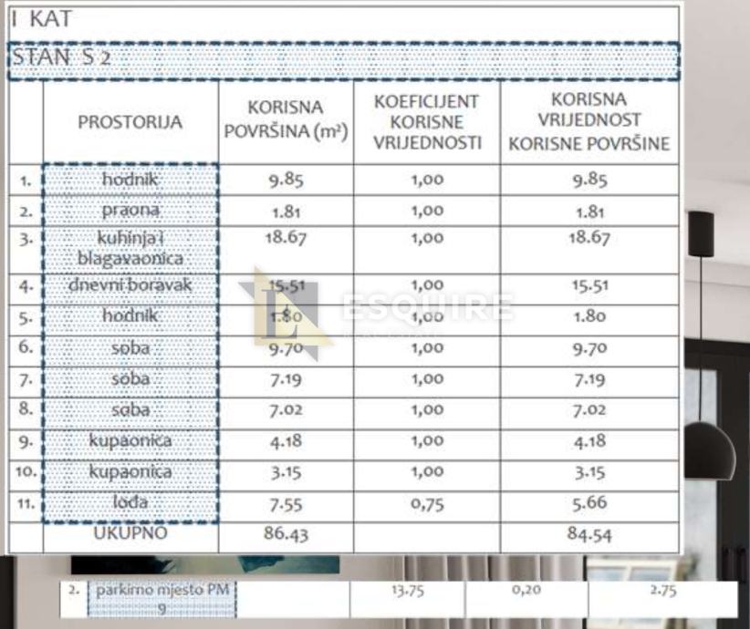 Neto stambena površina iznosi 84,54 m²