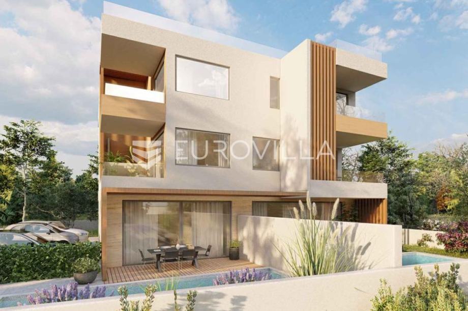Zadar, Bibinje - prizemni dvosoban stan s vrtom, bazenom, 80 metara do (prodaja)