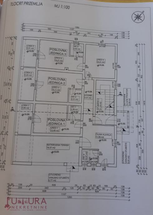 Visoko prizemlje: prijemni ured, wc i terasa.