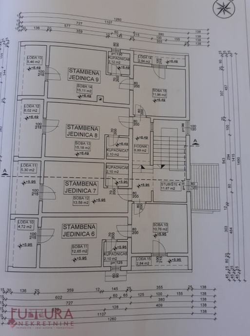 - apartman 6: jedna spavaća soba, dnevni boravak + kuhinja + blagovaona, kupaonica i terasa.