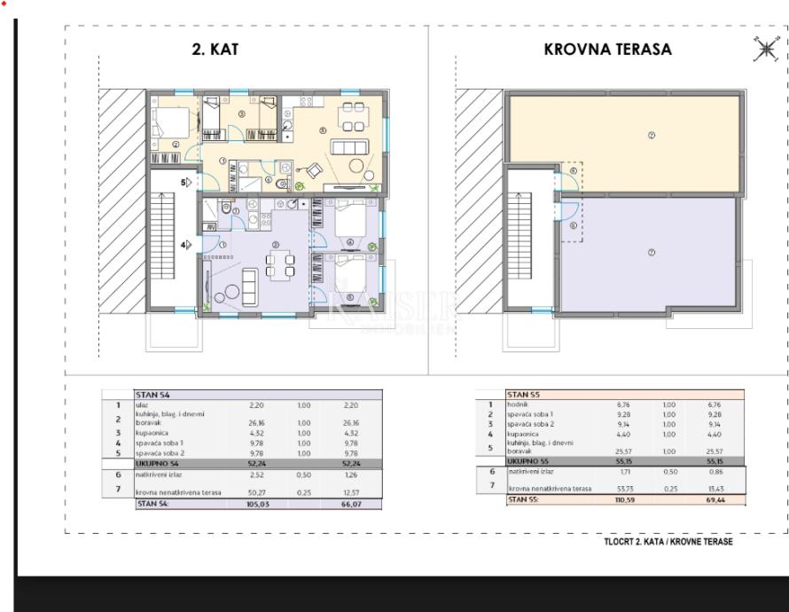 krovna terasa: 53,73 m² (obračunski 13,43 m²)