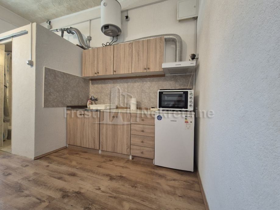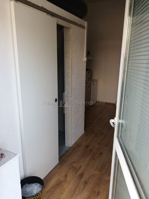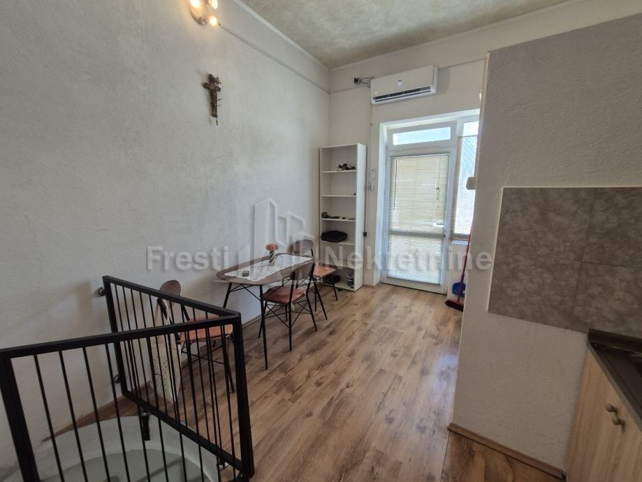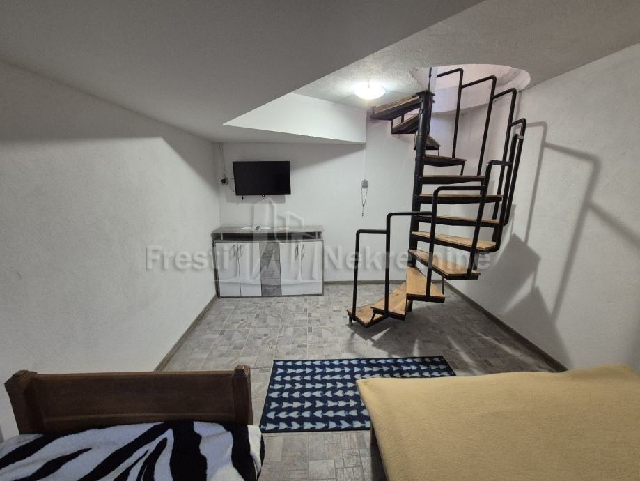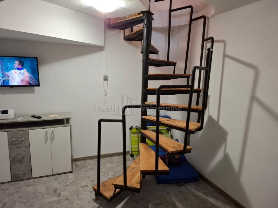 Prodaje se dvoetažni poslovni prostor/stan od 21,55 m2 (u naravi 30 m2). Ulaz u stan je s dvorišne strane, a obuhvaća prizemlje u kom je kuhinja, boravak i kupaonica dok se u suterenu nalazi spavaća soba sa prozorom do koje se dolazi kružnim stepenicama.