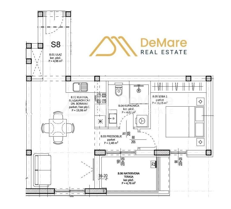 2.KAT S8 ≅ Stan s 1 spavaćom sobom i krovnom terasom