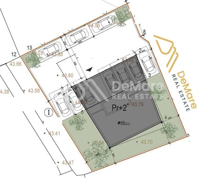 Radi se o višestambenoj zgradi koja se sastoji od ukupno 5 stanova. Zgrada ima prizemlje, prvi i drugi kat s izlazom na krovne terase.