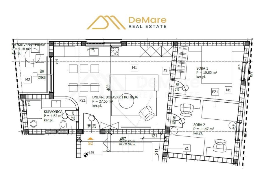 1. KAT - S2 ≅ Stan s 2 spavaće sobe s natkrivenom terasom