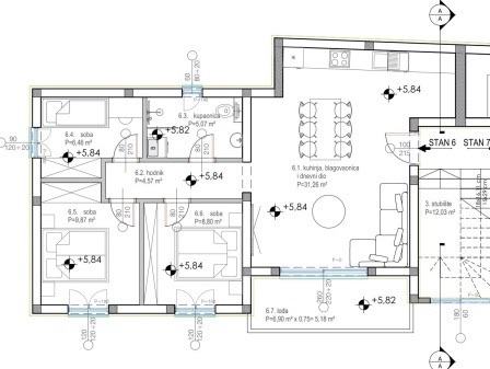 - dnevnog boravka, kuhinje i blagovaonice s ostavom (31,26 m2)