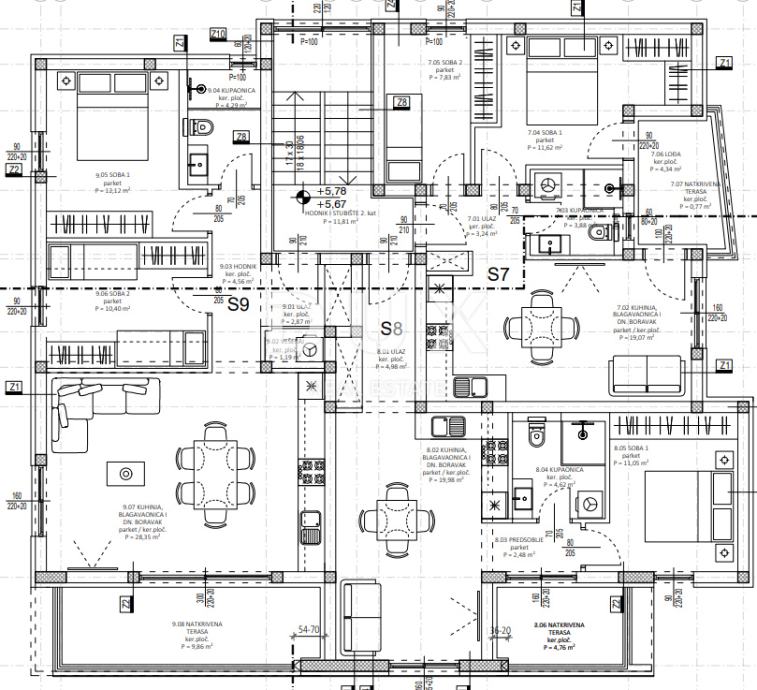 Stan S8 se sastoji od udobne spavaće sobe, moderne kupaonice, otvorenog dnevnog boravka s kuhinjom i blagovaonicom, natkrivene terase te dodatnog spremišta u podrumu. Uz stan dolaze i dva privatna parkirna mjesta.
