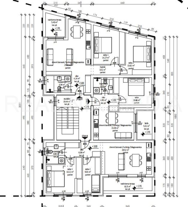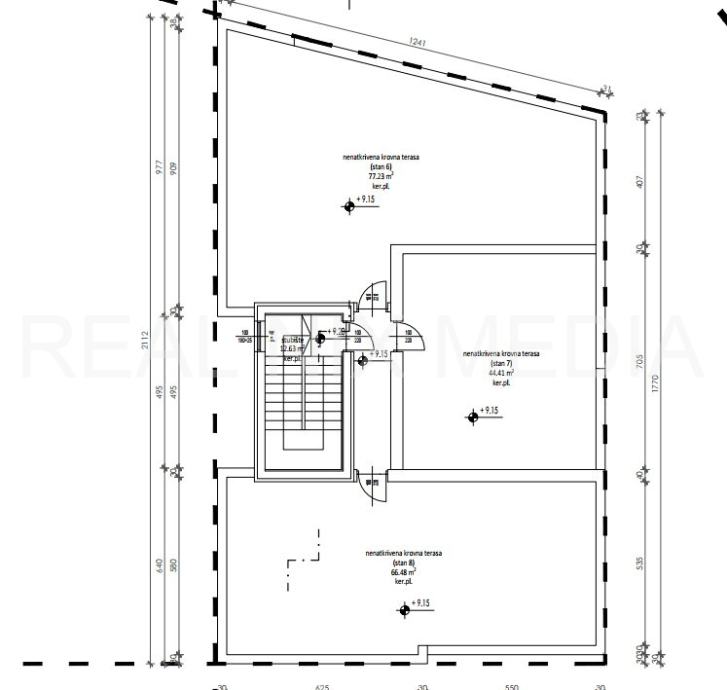 DVA vanjska parkirna mjesta te KROVNA TERASA površine 66,48 m2