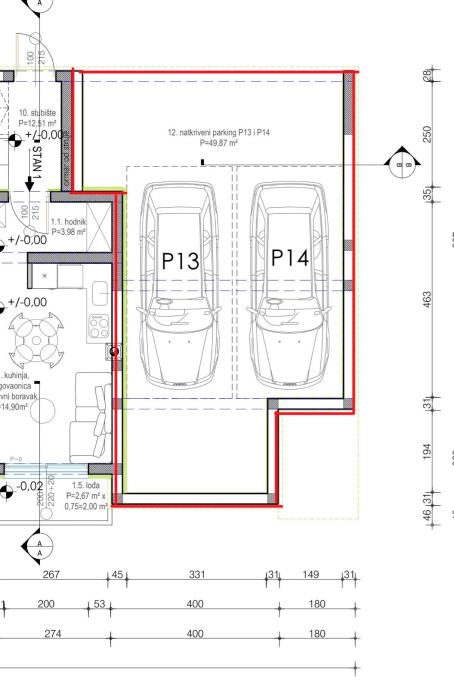 Stanu pripadaju dva natkrivena parkirna mjesta, odnosno natkrivena površina od 50 m2 za parking.