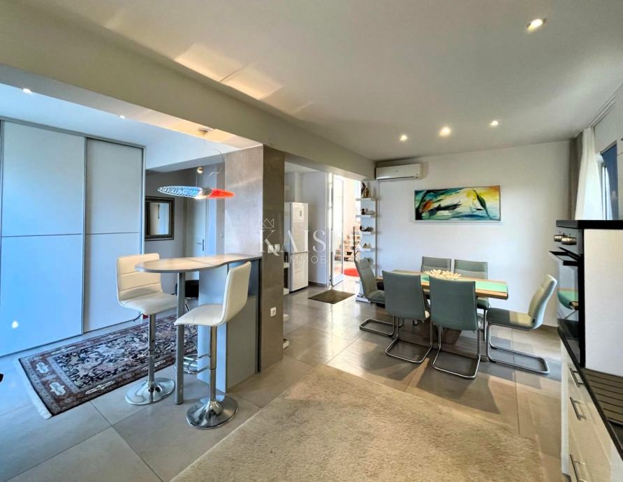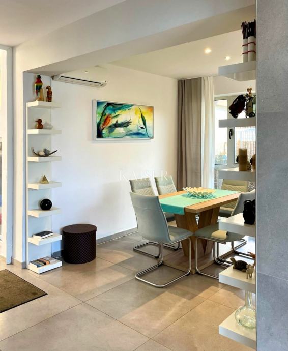 Samostojeća kuća površine 186 m2 izgrađena je na parceli od 450 m2, u mirnoj ulici. Centar grada udaljen je 3,5 km, more 2 km, a zračna luka 12 km.