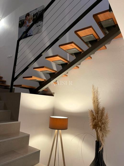 Dvorište od 264 m2 nudi privatnost i mogućnost izgradnje bazena. Kuća je potpuno namještena, opremljena s četiri klima uređaja, kaminom, protuprovalnim vratima te raspolaže s 5 parkirnih mjesta.