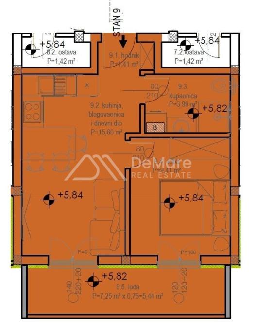 ≅ Dnevnog boravka s kuhinjom i blagovaonicom (open space) / 15,60 m2,