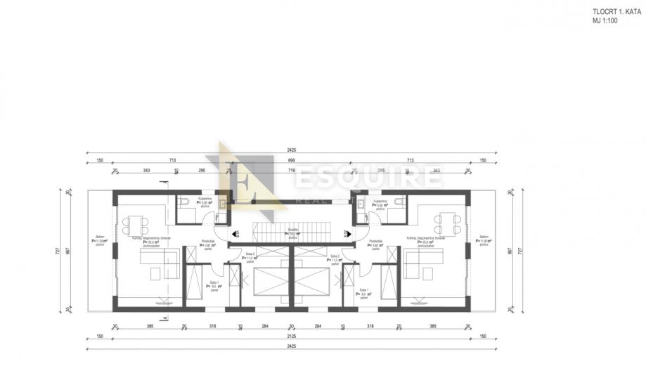* dnevnog boravka s kuhinjom i blagovaonicom – 25,14 m²