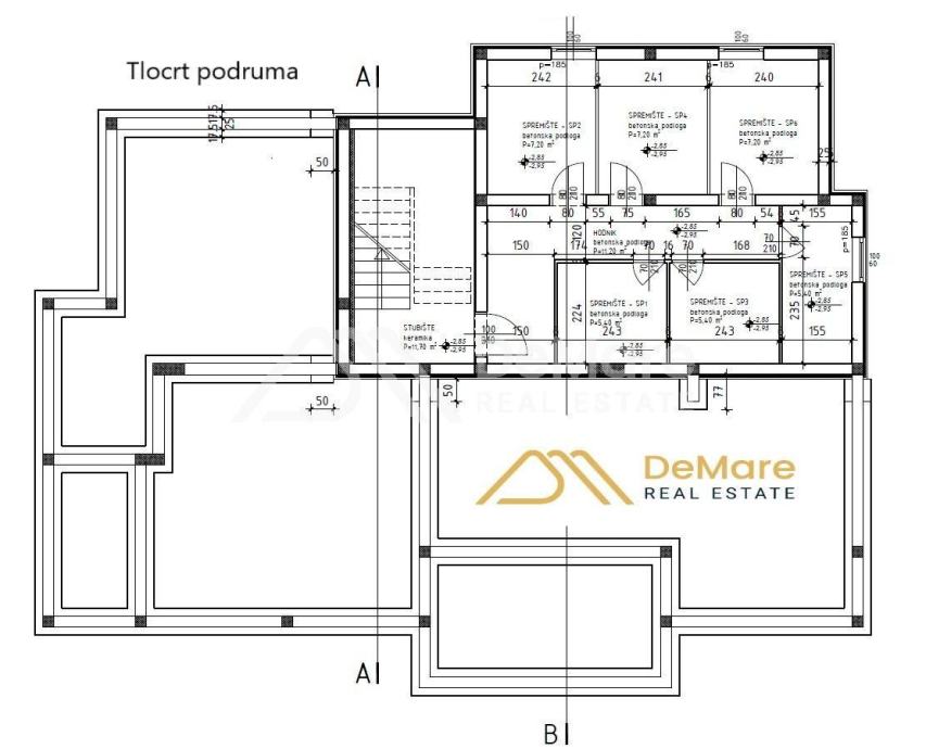 Zgrada ima 4 etaže / podrum, prizemlje, prvi i drugi kat, sa ukupno 6 stanova. U podzemnoj etaži nalaze se ostave, a parkirna mjesta smještena su na uređenom parkiralištu na okućnici zgrade. Svakom stanu pripadaju 2 parkirna mjesta.