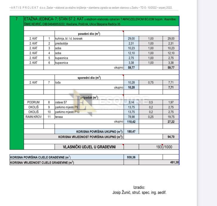 Smješten je na drugom katu moderne stambene zgrade izgrađene 2022. godine, u mirnom dijelu Borika, a ukupna bruto površina stana iznosi 180,47 m².