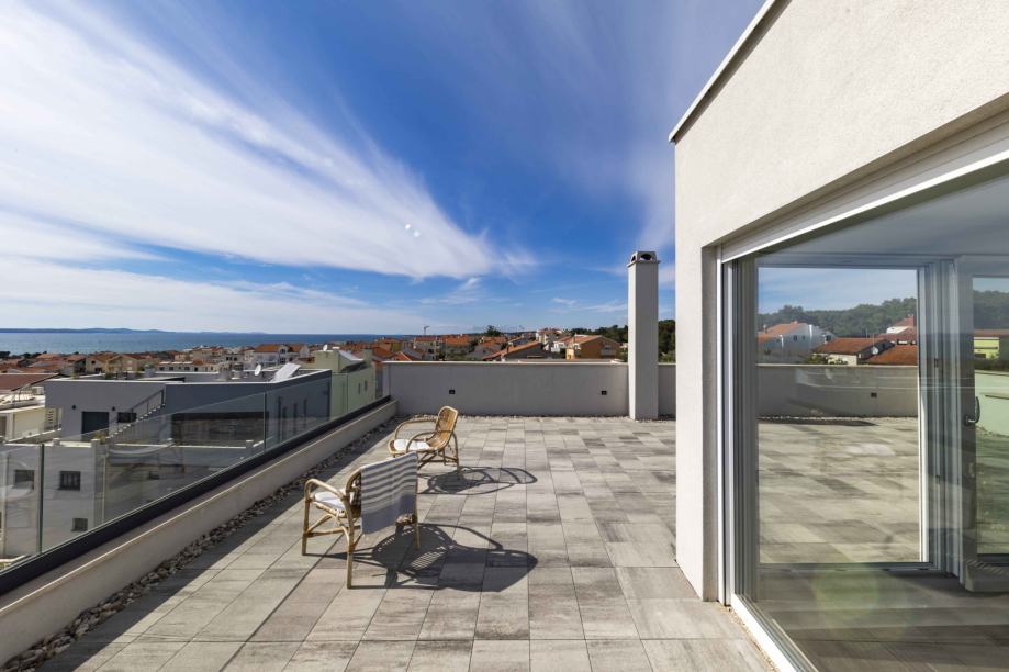ZADAR, (BORIK) LUKSUZNI DVOETAŽNI TROSOBAN PENTHOUSE, POGLEDA NA MORE (prodaja)