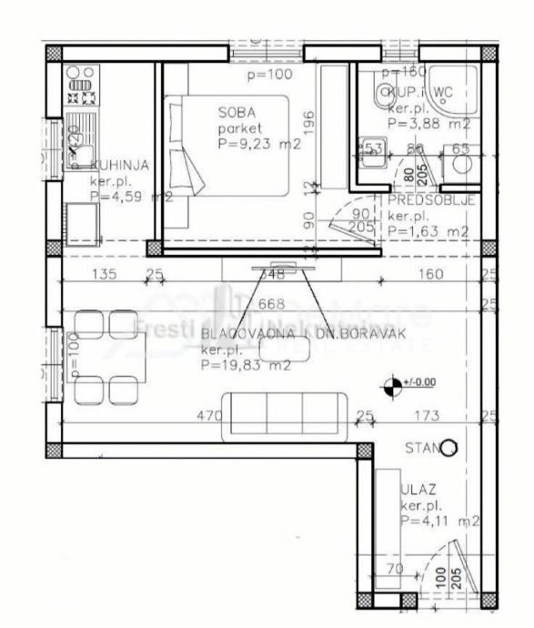 - Dnevnog boravka s blagovaonicom (19,83 m2)