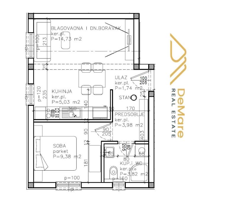 - Dnevnog boravka s blagovaonicom (14,73 m2)