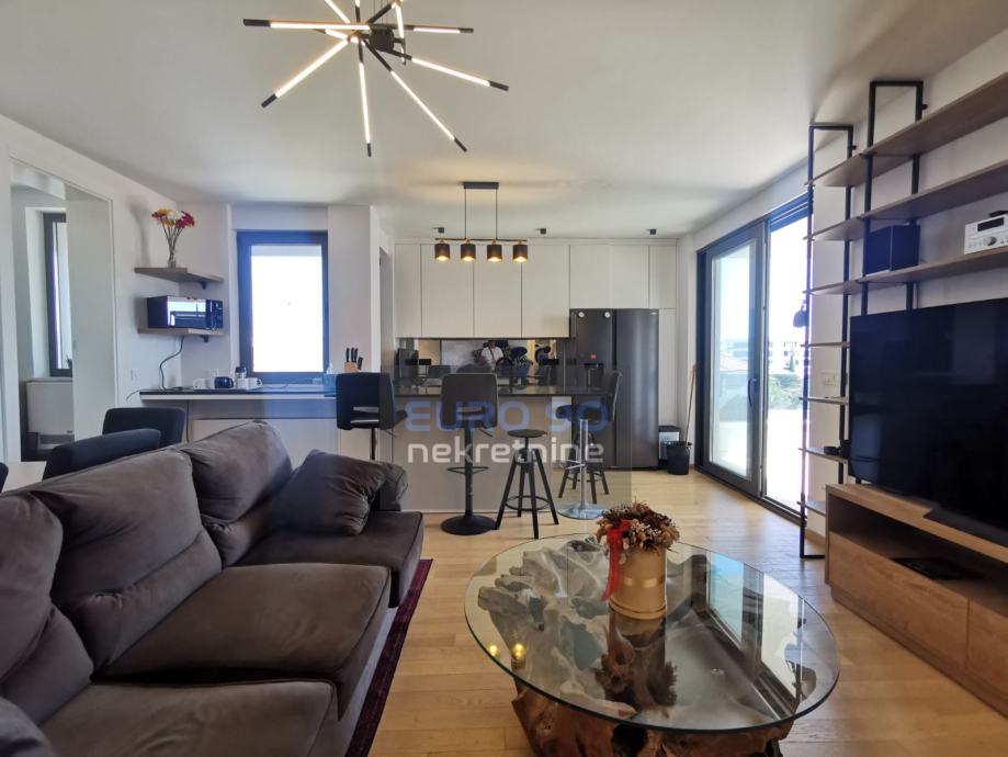 Stan je u potpunosti namješten, podno centralno grijanje u cijelom stanu putem dizalice topline, klimatiziran i kao takav se prodaje.
