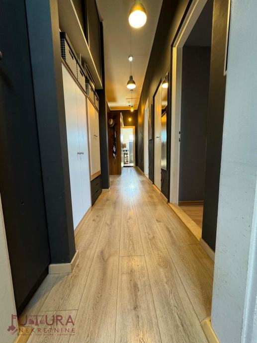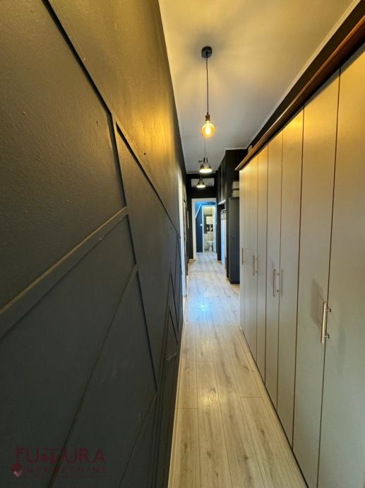 Sastoji se od: dvije spavaće sobe, dnevnog boravka, kuhinje + blagovaone, hodnika, kupaonice i balkona.