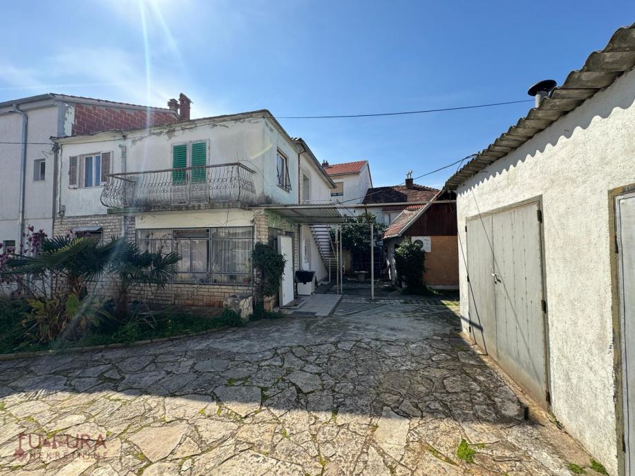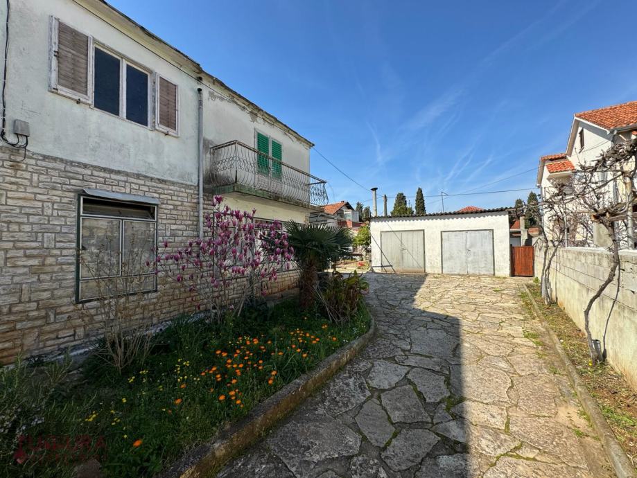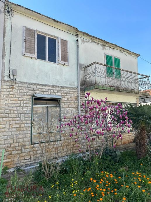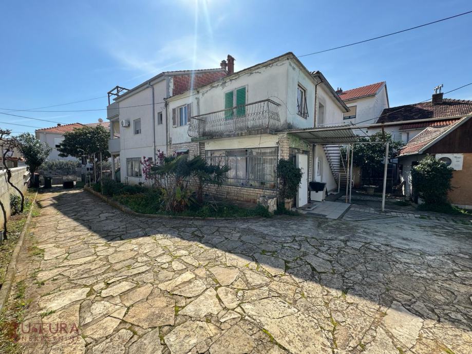 Zadar - Brodarica, prodaje se dvojna kuća katnica od 188 m2 stambene površine i 233 m2 okućnice izgrađena na zemljištu od 377 m2. Kući je potrebna kompletna renovacija.