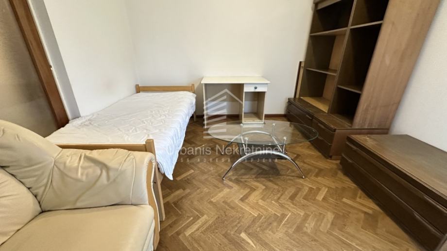 Daje se u dugoročan najam dvosoban stan na Bulevaru, površine 63 m2. Nalazi se na drugom katu zgrade s liftom. Sastoji se od ostave, kupaonice, jedne velike spavaće sobe, jedne manje spavaće sobe, dnevnog boravka, kuhinje s blagovaonicom i balkona. Stan je namješten, ali nema perilicu suđa i nedostaje oprema poput suđa i posteljine. Uređenje je starije, ali je uredno održavan. Grijanje je na 1 klima uređaj, a u stanu je i dodatna grijalica. Dimnjak se ne koristi. Uz potpis ugovora o najmu, predaje se i jedan polog u visini mjesečne najamnine. Dodatni troškovi su: čišćenje stubišta (7 EUR), čistoća (11 EUR). struja i voda po potrošnji. Po želji vlasnika, tražimo zaposlene, uredne i ozbiljne najmoprimatelje, sa eventualno jednim djetetom, ali bez kućnih ljubimaca. Sve informacije na broj 0911527577.