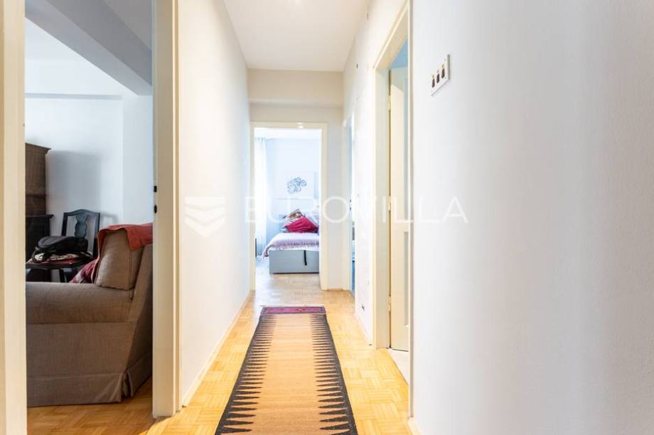 Zadar, Center, three-room apartment with sea view is in a great location.The apartment consists of a spacious entrance area and hallway, two large bedrooms, bathroom, guest toilet, kitchen, dining room and living room, and a loggia with a beautiful view of the sea and the bridge of the city of...