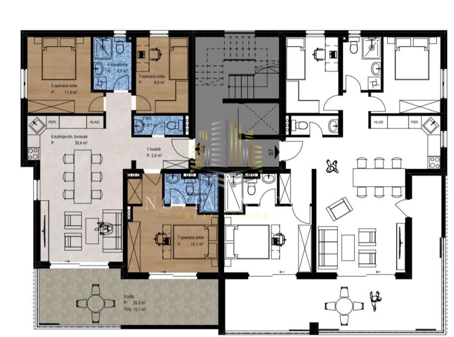 Svi ugrađeni materijali, kao i završne obloge, pažljivo su odabrani kako bi zadovoljili najviše estetske i funkcionalne standarde suvremenog stanovanja.