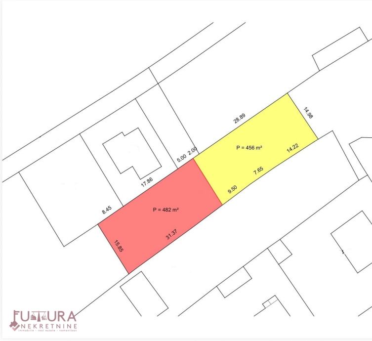 Pokrenuta je parcelacija, gledati skicu zemljište crvene boje.