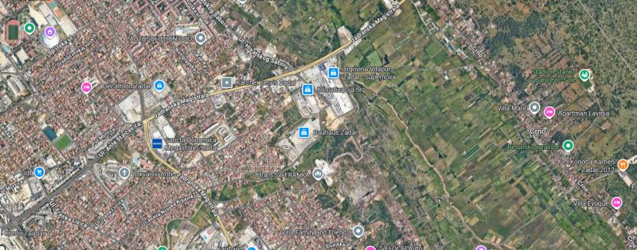 Prodaje se građevinski teren od 8244 m2 poslovna zona Zadar u neposrednoj blizini trgovački centara Super Nove i Bauhausa. Zemljište se nalazi unutar Industrijsko- skladišne zone.
