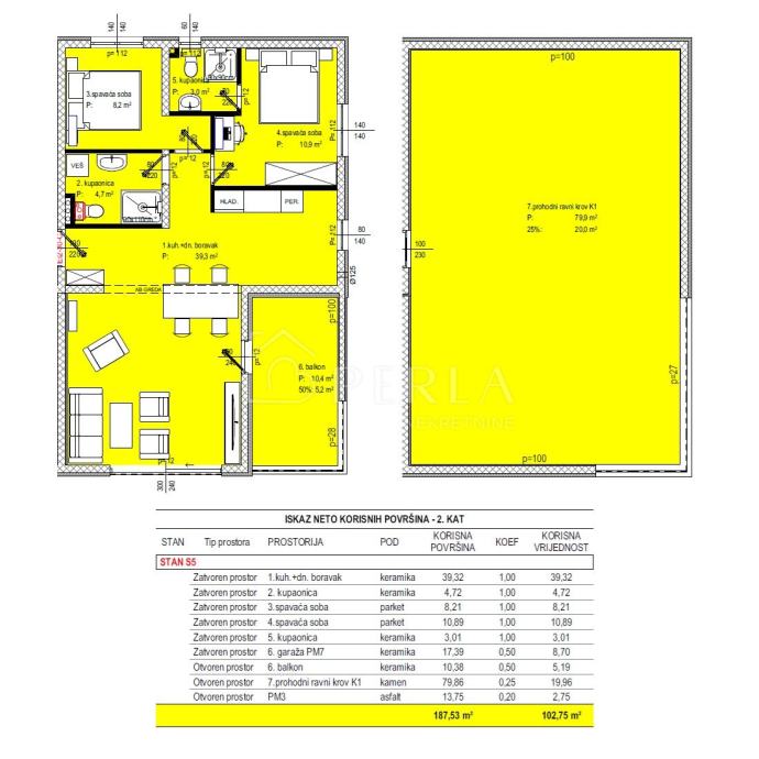 - Krovna terasa (79, 86 m2 bruto, 19,96 m 2 netto)