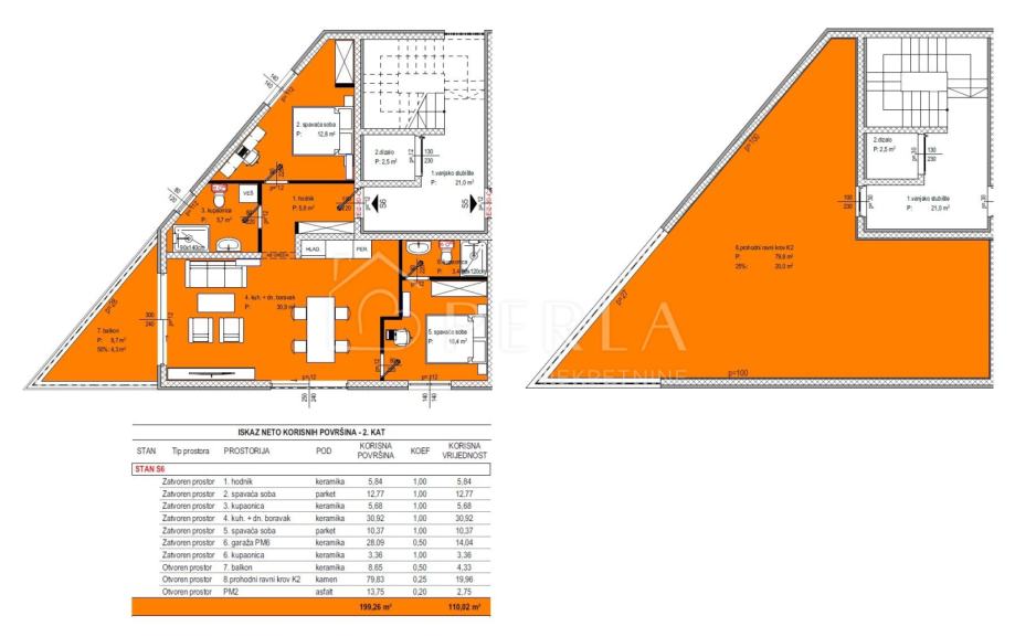 - Krovne terase (79,83 m2 bruto, 19,96 m2 netto)