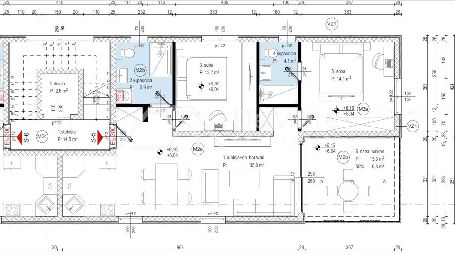 -- dvije kupaonice / 5,92 m2 i 4,09 m2,