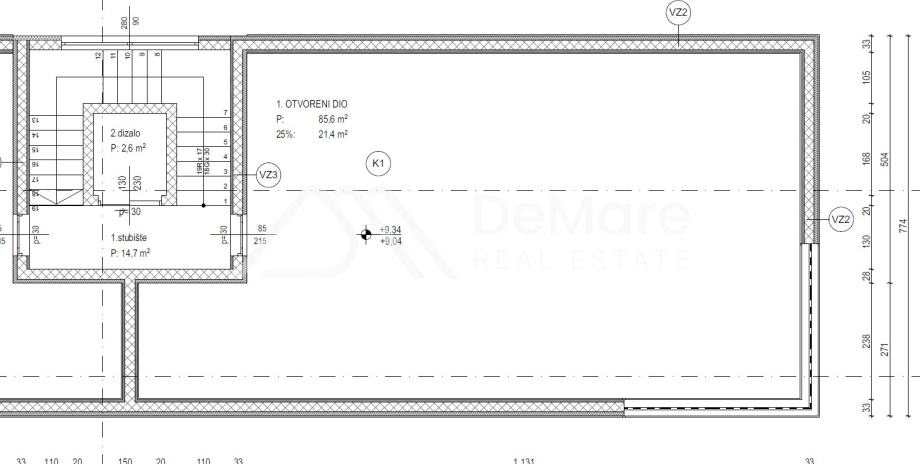 -- dnevnog boravka (open space) s kuhinjom i blagovaonicom / 34,96 m2 iz kojega se izlazi na