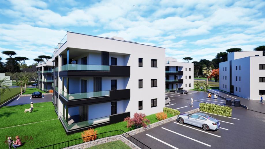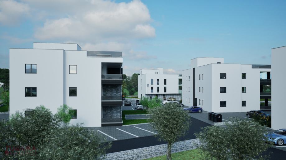 Zadar - Crvene Kuće, prodaje se trosobni stan od 127,46 m2 na drugom katu stambenog objekta u izgradnji sa ukupno osam stanova, planirano useljenje 12/2025. godine.