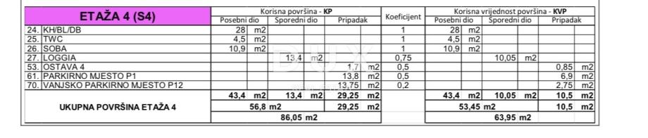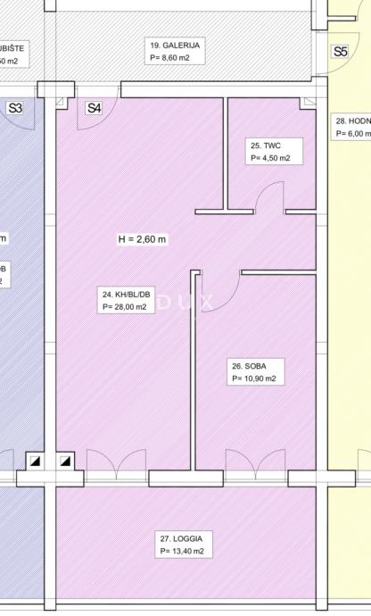 Posebno se ističe stan S4, smješten u na prvom katu zgrade, neto korisne površine 64 m² sa svim pripadcima. Riječ je o komfornom jednosobnom stanu izvrsnog rasporeda koji se sastoji od dnevnog boravka povezanog s kuhinjom, spavaće sobe, hodnika i ugodne loggie. Stan je opremljen kvalitetnom PVC stolarijom s električnim roletama i komarnicima, a grijanje i hlađenje osigurano je klima-uređajima u dnevnom boravku i spavaćoj sobi. Dodatnu vrijednost daje dimnjak s mogućnošću grijanja na peć na kruta goriva.