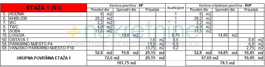 jedno vanjsko parkirno mjesto