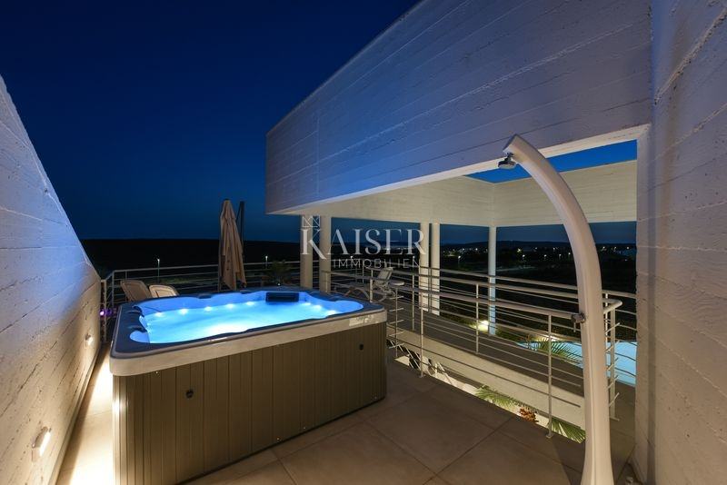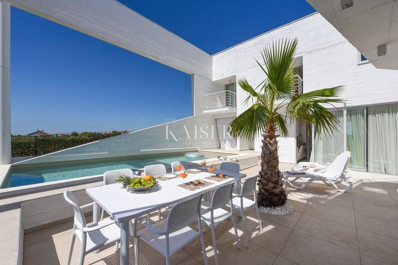 Kaiser Immobilien vam s ponosom predstavlja ovu luksuznu bijelu vilu smještenu u mirnom zaleđu Sukošana, u naselju Debeljak. Ova suvremena vila idealno je pozicionirana za ljubitelje nautike i života blizu mora, s obzirom na neposrednu udaljenost Marine Dalmacija cca. 6 km, Kornata i Zadra, a opet dovoljno udaljena od gužve turističke vreve, pružajući potpuni mir i privatnost .