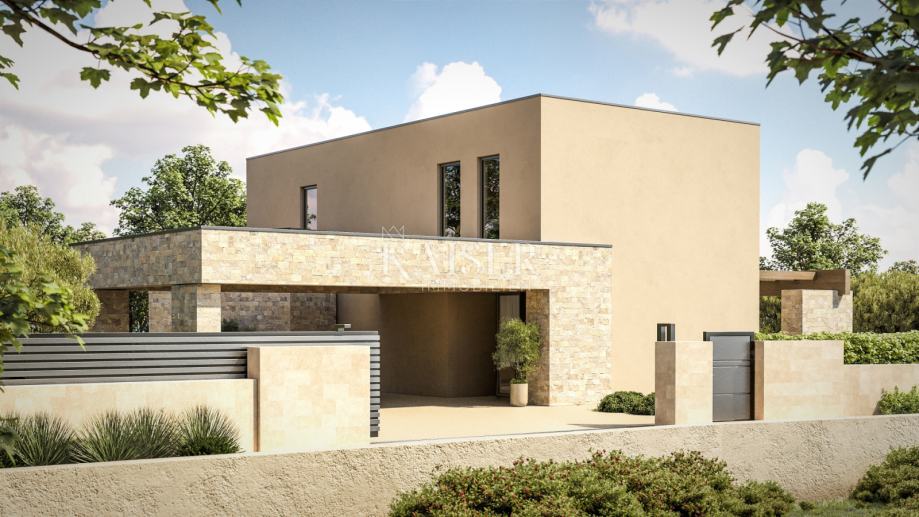 Od trenutka kada ugledate vilu, njezin moderan dizajn očarava jednostavnošću linija i skladnim proporcijama. Velike staklene površine omogućuju neometan protok prirodnog svjetla, dok pažljivo odabrani fasadni detalji dodaju notu sofisticiranosti. Ograđeno dvorište ispunjeno mediteranskim biljem nudi intimni prostor, a prostrana okućnica postaje pravo mjesto opuštanja uz šum laganog povjetarca.