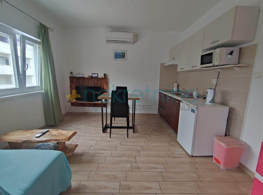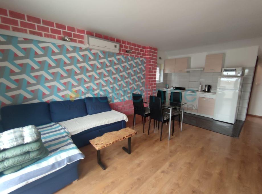 U prizemlju se nalazi jednosoban apartman s mogućnosti uređenja još jedne sobe od 14 m2, gdje se trenutno nalazi spremište, te balkon. Apartmanu u prizemlju pripadaju, vrt i komin.