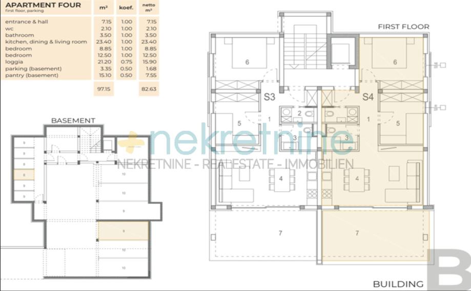 Stan S4 nalazi se na prvom katu i obuhvaća ukupno 82 m² stambene površine. Sastoji se od: