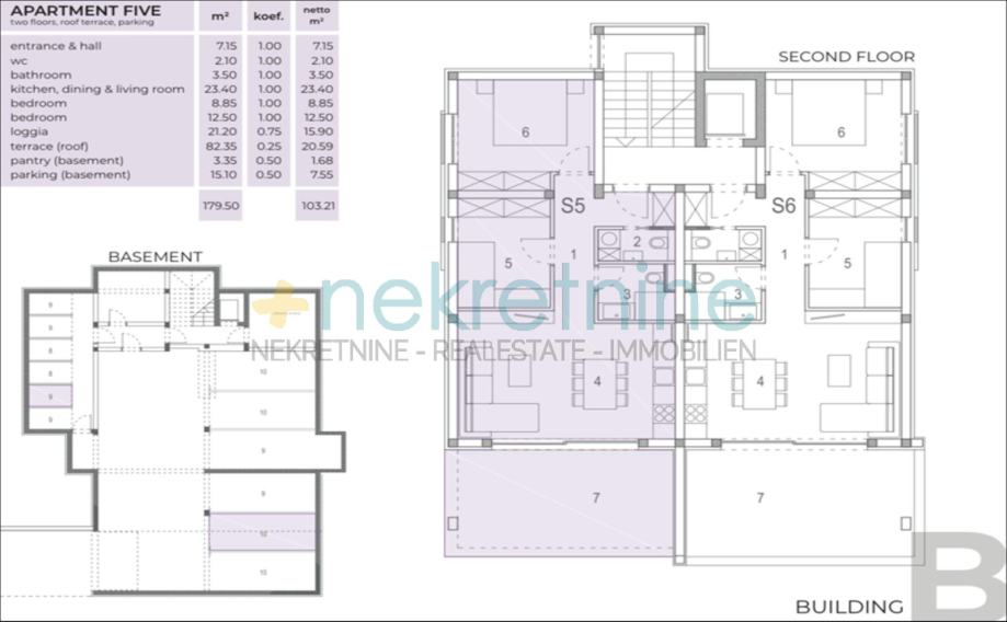 Stan S5 nalazi se na drugom katu i obuhvaća 103 m² stambene površine. Sastoji se od: