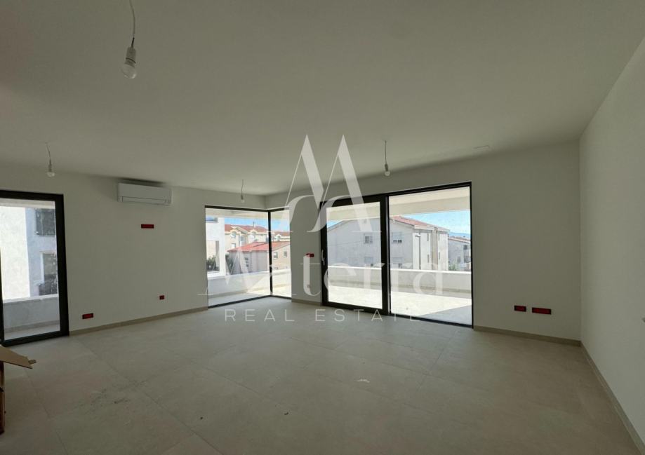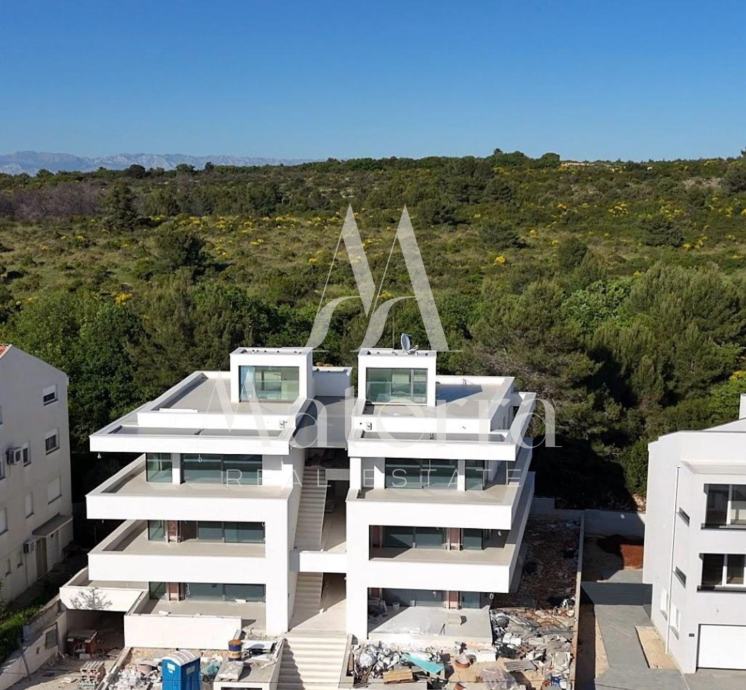 Prodaje se trosobni stan S4 na 1. katu moderne stambene zgrade u izgradnji, na atraktivnoj lokaciji u Diklu, udaljenoj svega 450 m od mora. Zgrada se sastoji od ukupno šest stanova, podzemne garaže i lifta koji povezuje sve etaže.